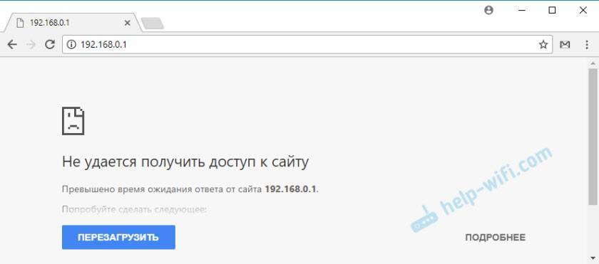 В этом случае, в браузере будет сообщение, что страница, или сайт роутера недоступен. Примерно вот так: