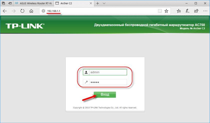 - На роутерах TP-Link и ASUS по умолчанию всегда admin/admin. Адрес обычно 192.168.1.1.
