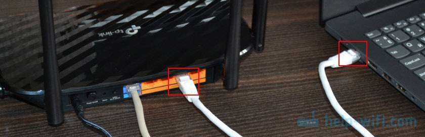 Если по кабелю, то на роутере кабель подключаем в LAN-порт.