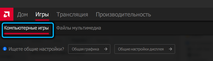 Активация функции Radeon Chill осуществляется очень просто. Заходим в «Настройки Radeon», в верхнем меню выбираем пункт «Игры» и подпункт «Компьютерные игры».