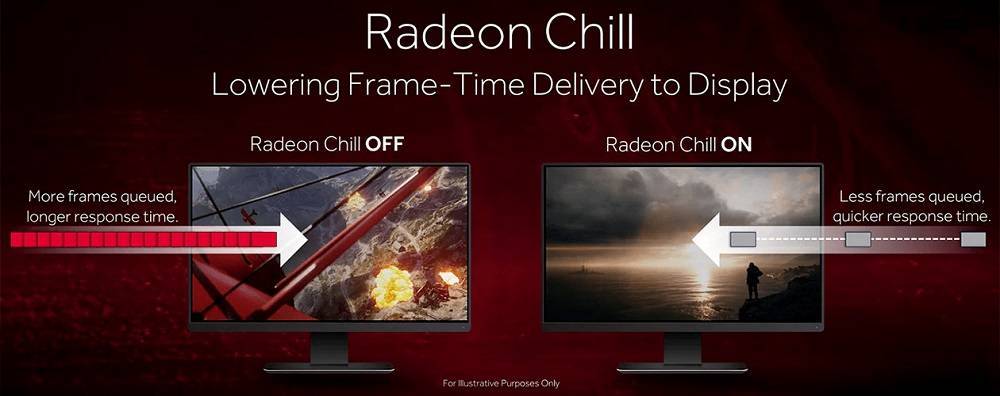 Основное предназначение технологии Radeon Chill – изменять показатель FPS (частота смены кадров) в зависимости от игровой ситуации. Что даёт такая адаптивность? Во-первых, снижает энергопотребление, что для мощных современных компьютеров немаловажный фактор. Во-вторых, снижает уровень шума и температурный режим работы графического адаптера. Наконец, использование Chill позволяет повысить плавность движений.