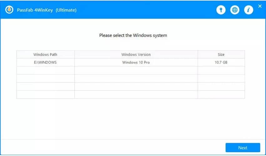 Step 7: Now you will see the PassFab interface, select your Windows from it.