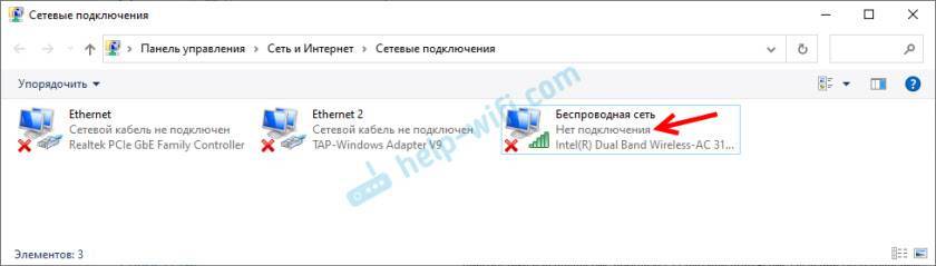В окне “Сетевые подключения” возле беспроводного адаптера скорее всего будет надпись “Нет подключения”.