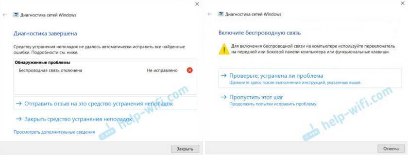 А при выполнении диагностики неполадок сети, Windows скорее всего сообщит о том, что беспроводная связь отключена и для ее включения нужно использовать переключатель на передней или боковой панели компьютера, или функциональные клавиши.