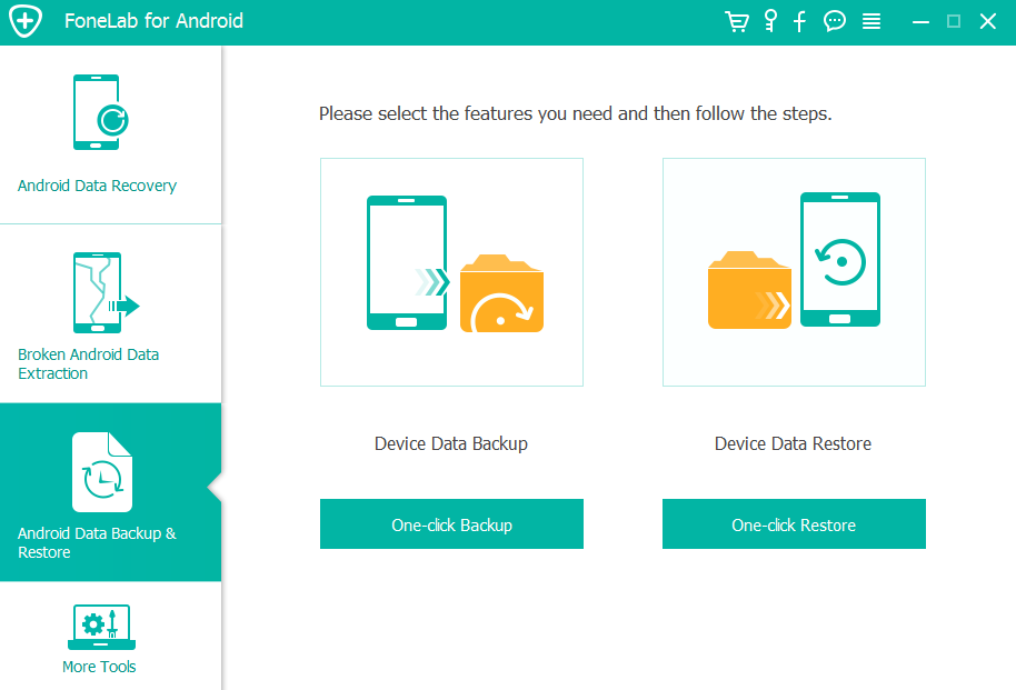 Шаг 3В правом окне вы можете использовать ключевые функции, Резервное копирование данных устройства и Восстановление данных устройства, Здесь вам нужно выбрать функцию «Резервное копирование данных устройства».
