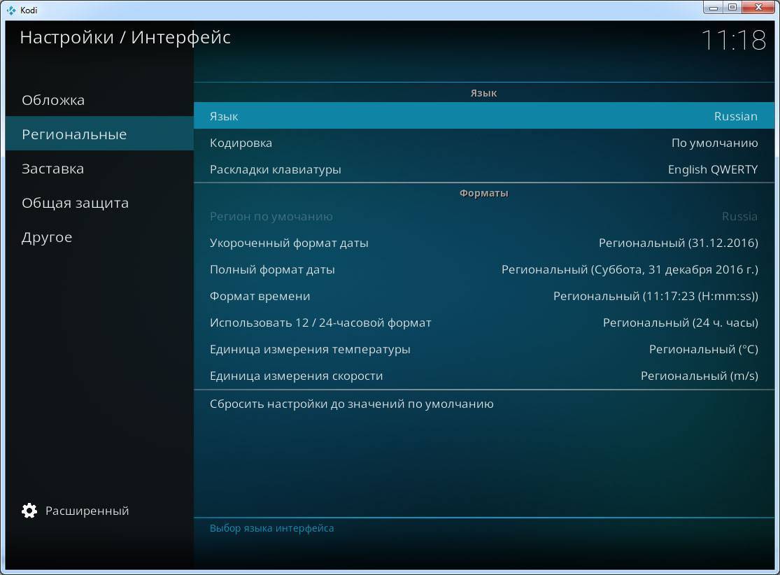 По умолчанию у проигрывателя Kodi англоязычный интерфейс и его потребуется изменить: