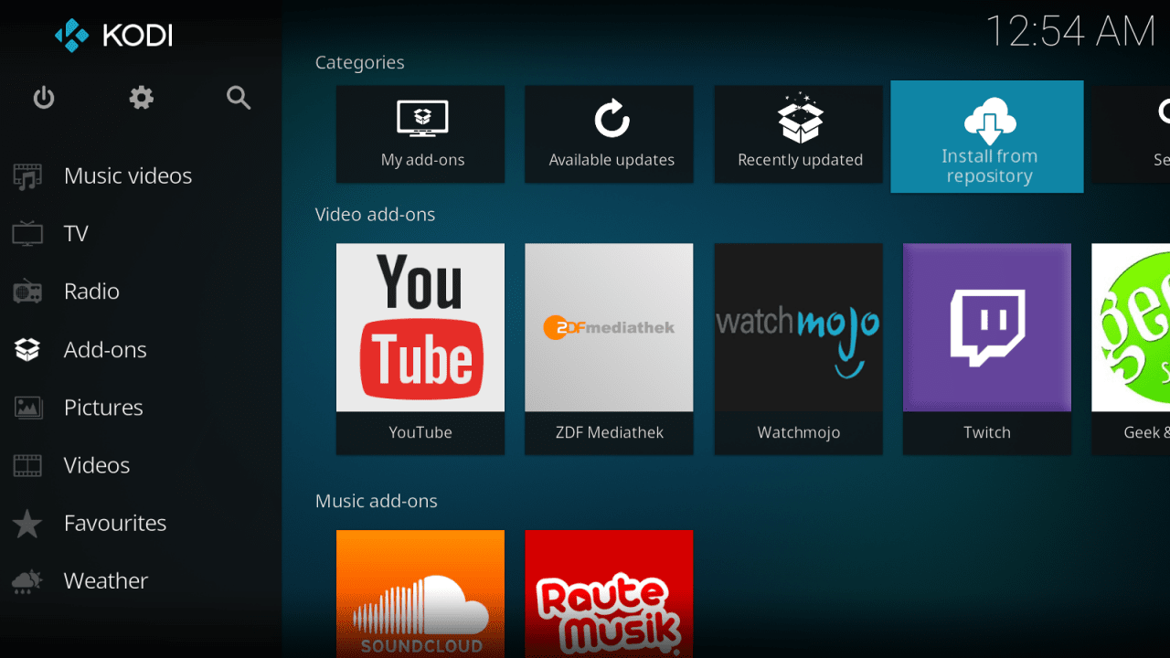 Kodi предлагает официальное репо, но вы также можете найти множество сторонних репо от людей, которые создают свои собственные дополнения. Репозиторий Kodi включается в приложение автоматически.