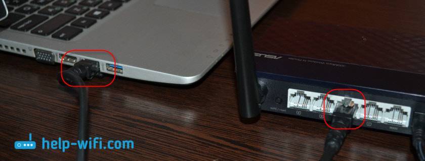 Соединенный с ноутбуком роутер с помощью сетевого кабеля