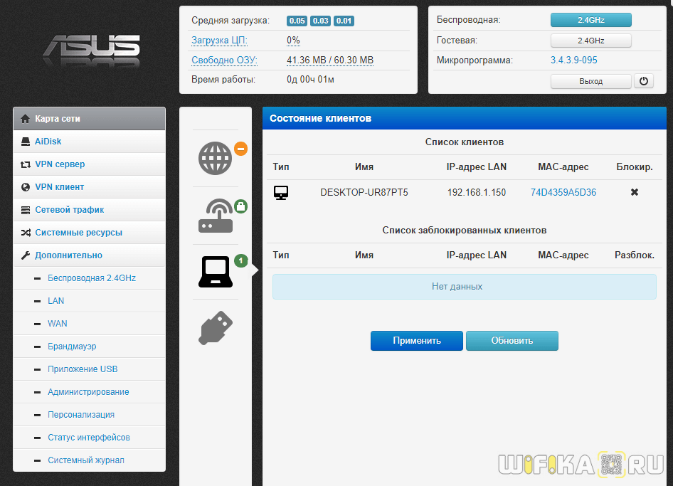 Фильтр MAC адресов Asus