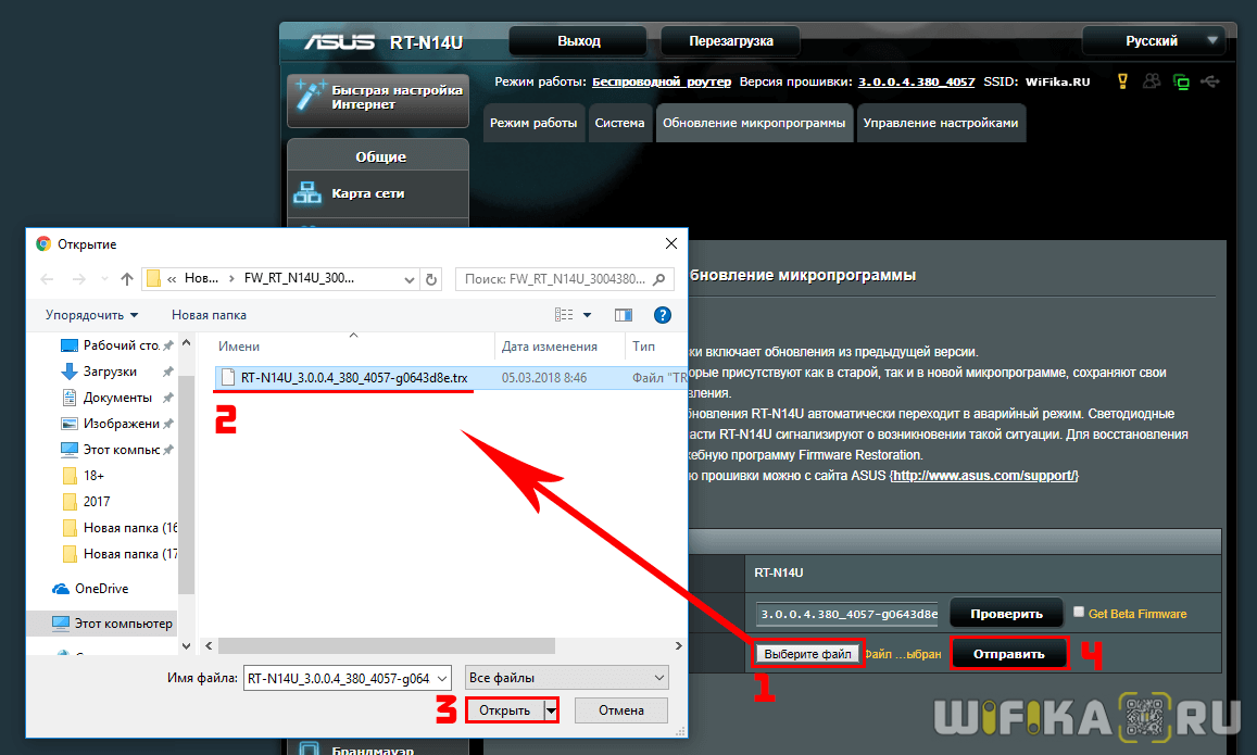 Здесь нажимаем на кнопку «Выберите файл», выбираем с ПК тот самый загруженный файл прошивки, и нажимаем на кнопку «Отправить».