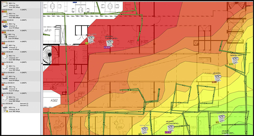 Приложения для ПК с функциями проверки уровня WiFi сигнала обладают очень большими возможностями. Например, с помощью некоторых можно построить так называемую «тепловую карту» WiFi покрытия. Вы наглядно увидите, как ведёт себя Вай Фай. Например, это возможно в бесплатной программе Ekahau HeatMapper: вы «рисуете» план здания и перемещаетесь с компьютером фиксируя уровень подключения в разных точках.