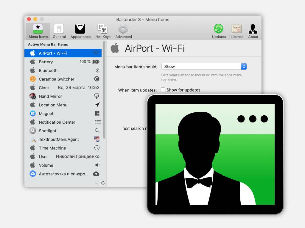 Приложение Bartender предназначено для того, чтобы уменьшить количество значков в правой стороне строки меню. Сюда многие приложения добавляют свои значки для быстрого доступа к каким-то востребованным возможностям.
