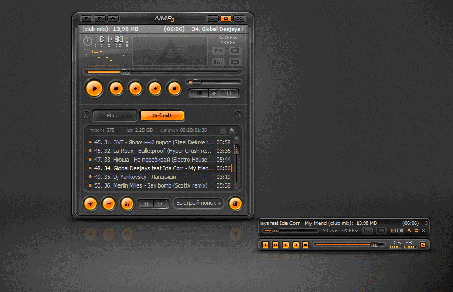 Популярный хорошо себя зарекомендовавший аудиоплеер используется даже сейчас после десятилетия борьбы с основными конкурентами. AIMP поддерживает возможность воспроизведения аудио различных форматов. На по умолчанию удобный интерфейс программы пользователи могут установить множество бесплатных тем. Сам плеер AIMP также распространяется абсолютно бесплатно.