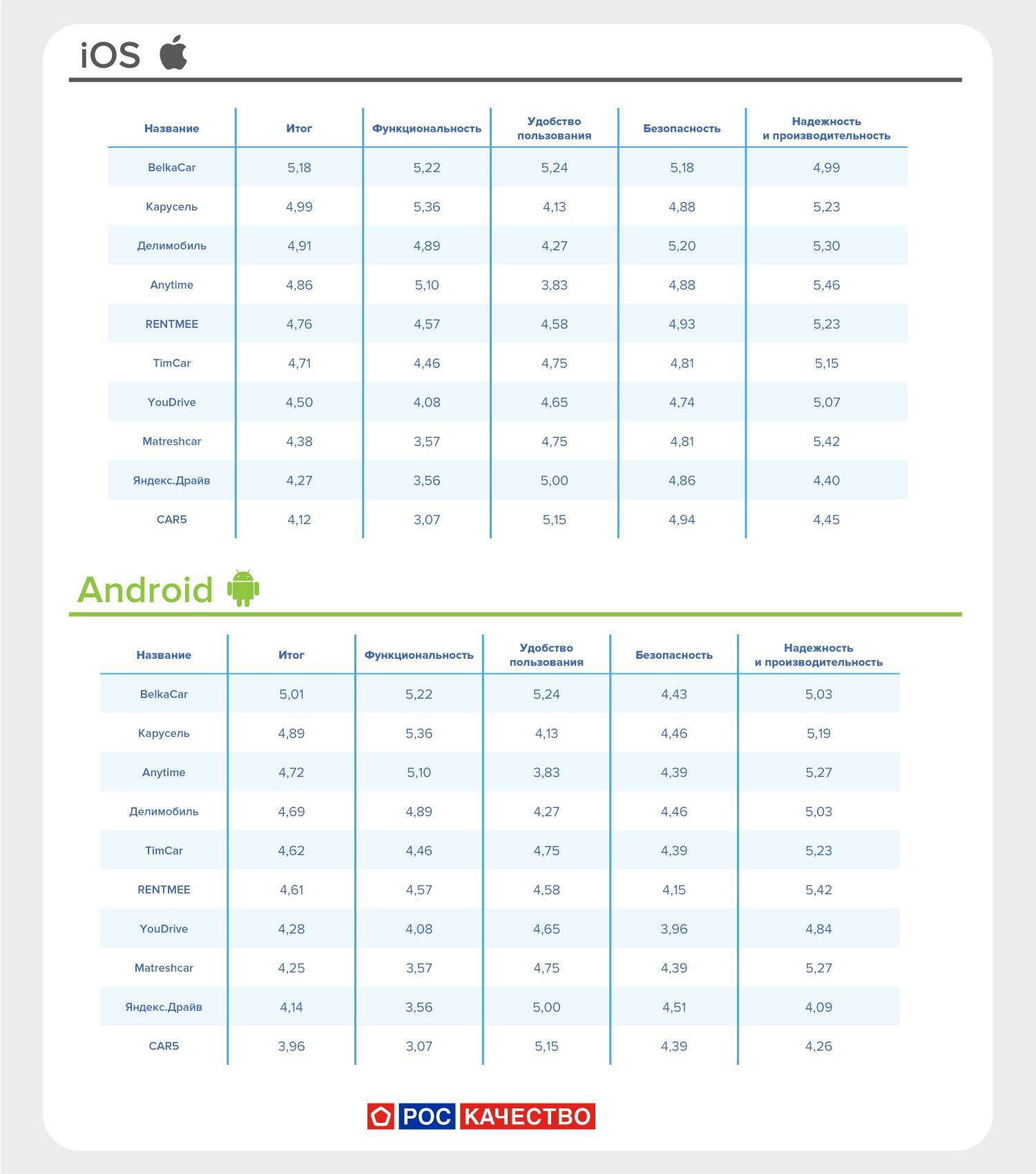 Исследование Роскачества: лучшие мобильные приложения каршеринга