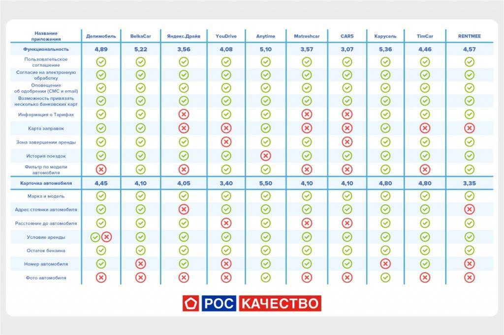 Как выбрать лучшее приложение, спросите вы и мы ответим, что эту работу уже сделали за нас. Роскачество провело мониторинг деятельности 10 крупнейших каршеринговых приложений, протестировав их по различным критериям. Вот какие результаты были получены: