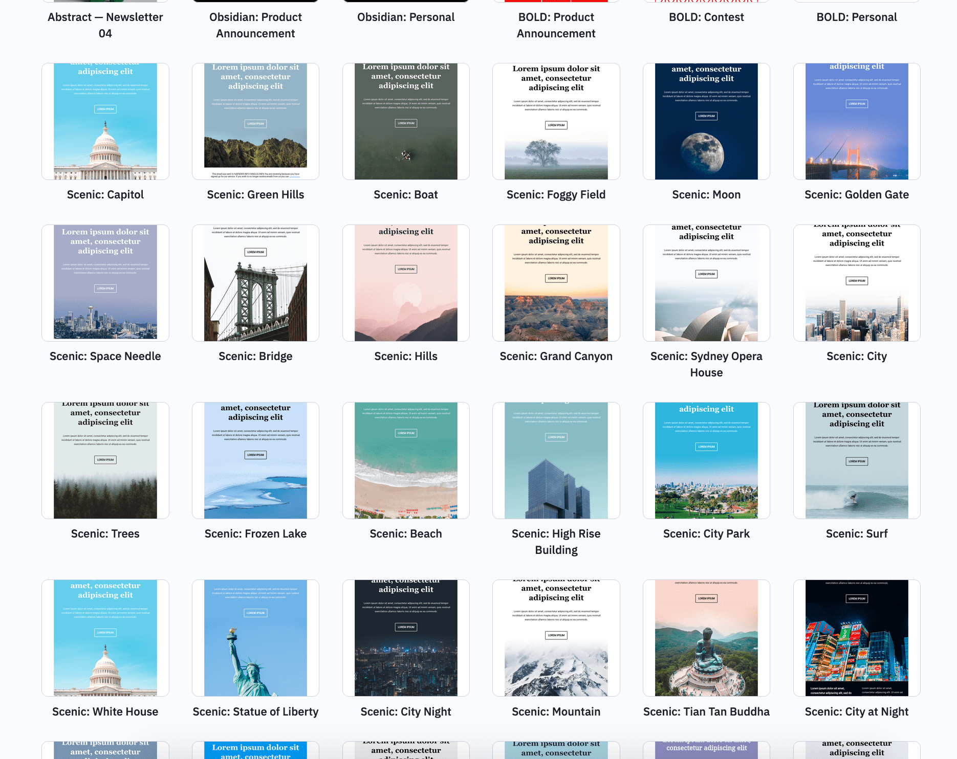 Коллекция шаблонов больше (100+), чем, например, у Mailchimp. Конструктор рассылок стандартный, состоит из базовых блоков (текст, картинка, кнопки соцсетей и пр.), также есть функция предварительного просмотра, которой очень удобно пользоваться.