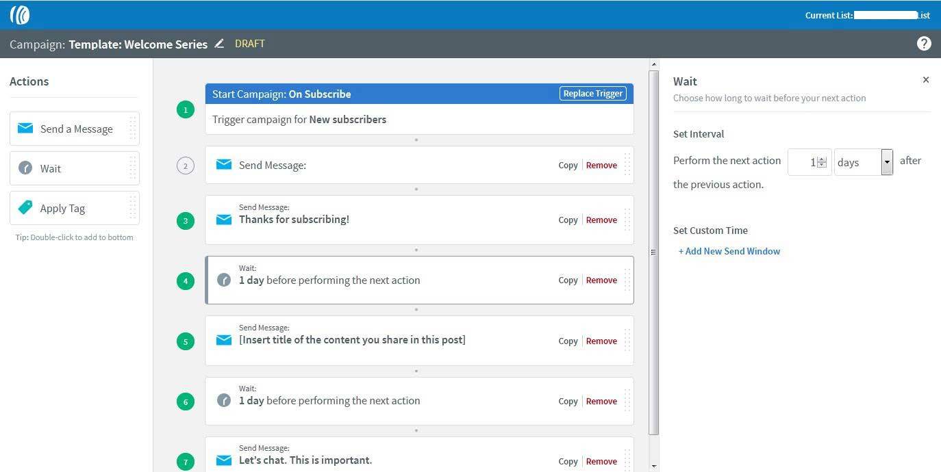 Пакеты от $11,92/месяц (до 600 подписчиков). Есть возможность создавать опросы, проверять правописание, редирект на любую страницу после подписки или отписки. Более 50.000+ клиентов, в основном это малый бизнес.