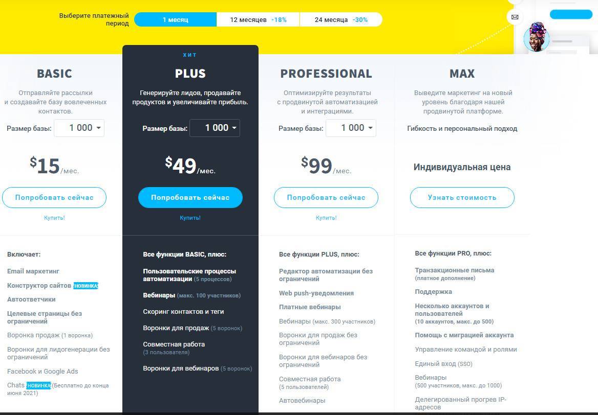 Для новичков в инфобизнесе есть бесплатный тариф: ведение базы до 100 подписчиков и отправка до 500 писем в месяц.