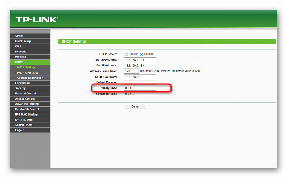 Это же можно сделать и с главным DNS, параметр которого называется «Primary DNS».