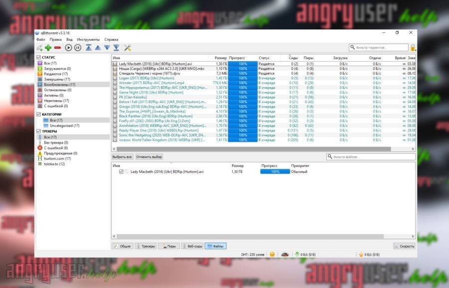 Это лучший торрент-клиент, по мнению пользователей, поскольку предлагает возможность загрузки файлов в программе с простым интерфейсом. Несмотря на множество различных настроек, новичкам будет очень легко разобраться с управлением. В сравнении с другими программами µTorrent предлагает низкое потребление системных ресурсов.