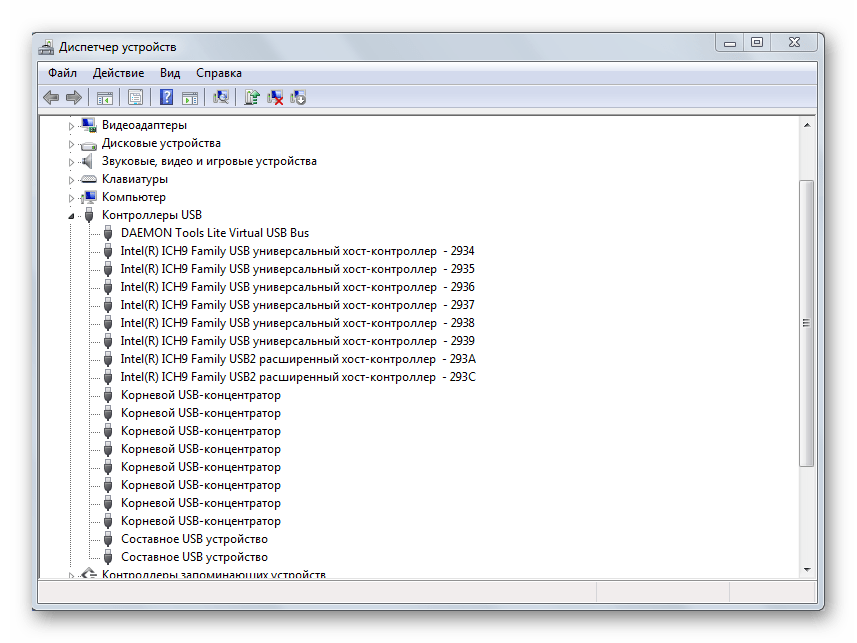 - Попробуйте переустановить драйверы самих контроллеров USB в Windows. Делается это аналогичным образом — через диспетчер устройств. О неисправности какого-то контроллера также свидетельствует желтый восклицательный знак. В этом случае понятно, почему комп не видит планшет.