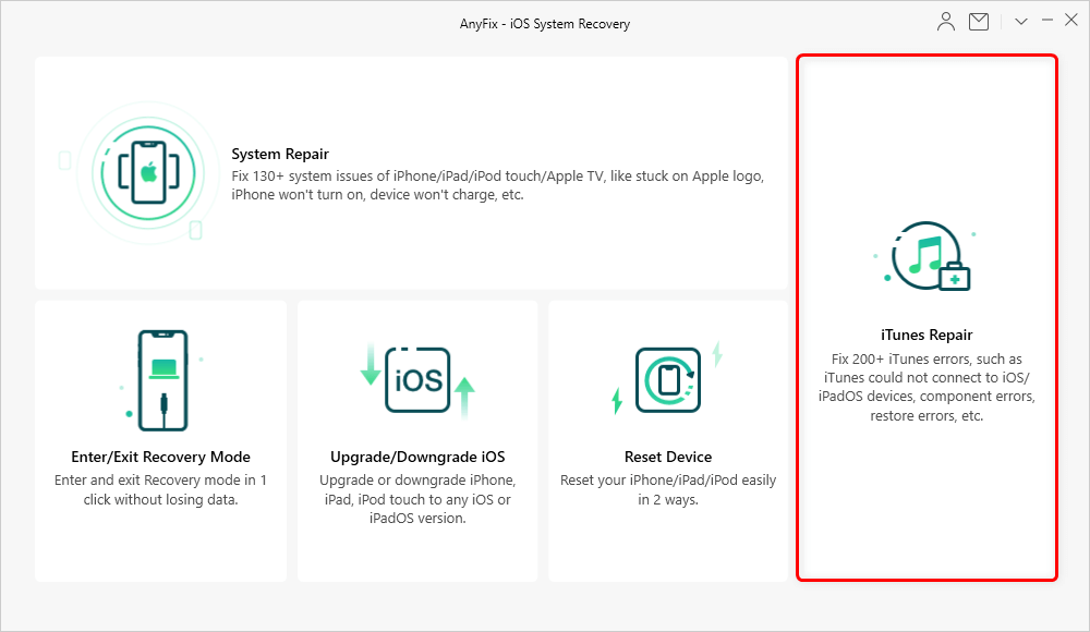 Step 1. Download AnyFix and run it on your computer > connect your iPhone to the computer > choose the iTunes Repair.