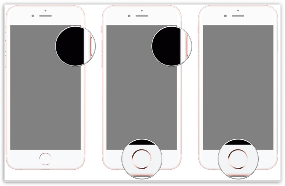 - Затем вам нужно зажать одновременно клавиши «Домой» и «Питания» примерно на десять секунд.