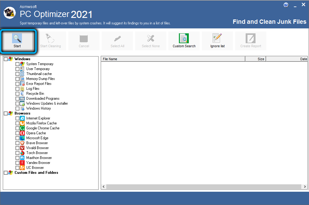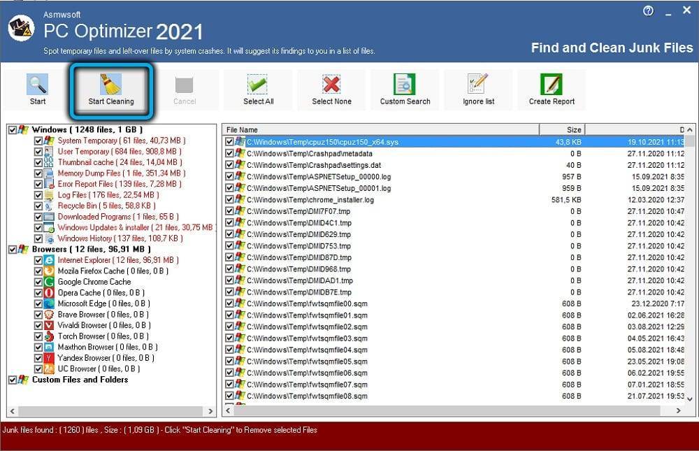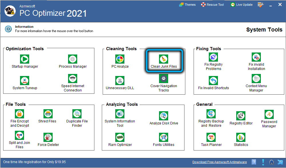 Если это не поможет, можно попробовать воспользоваться сторонним софтом, например, программой Asmwsoft PC Optimizer: скачайте утилиту с официального сайта, установите, запустите, выберите на основном экране вкладку Clean Junk Files, в новом коне кликните по кнопке Start.