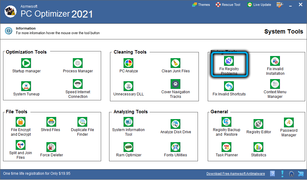 Теперь можно просканировать компьютер установленным антивирусом, после чего почистить реестр, желательно не вручную, а с помощью утилит типа CCleaner или той же Asmwsoft PC Optimizer (там имеется кнопка Fix Registry problems) – это позволит избавиться от ошибок реестра, связанных с файлом srvany.