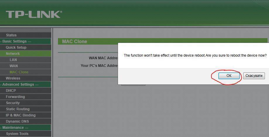 В данном разделе клонируем физический адрес сетевой платы Вашего компьютера, который уже был подключен к сети, нажав кнопку “Clone MAC Address To”.