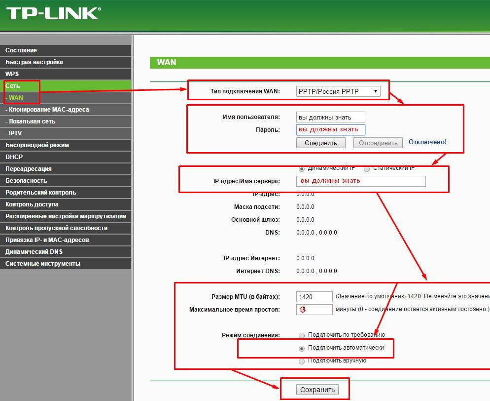 Сейчас данный протокол передачи данных редко используется, но все же встречается у некоторых провайдеров. TP-Link WR841N его тоже поддерживает. Для включения данного типа подключения потребуется: