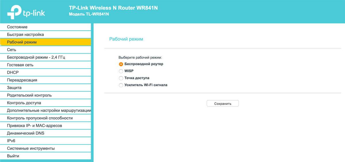 Открыть пункт «Беспроводной режим» и «Настройки беспроводного режима».