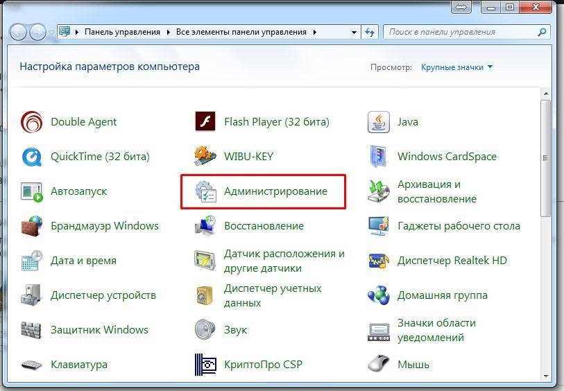Погнали:1. Открываем панель управления и выбираем «Администрирование», ну или просто в строке поиска Пуск пишем «Администрирование».