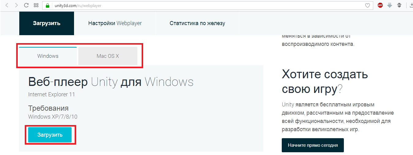 2. Запустите его и перейдите на страничку — unity3d.com/ru/webplayer (офсайт плагина).