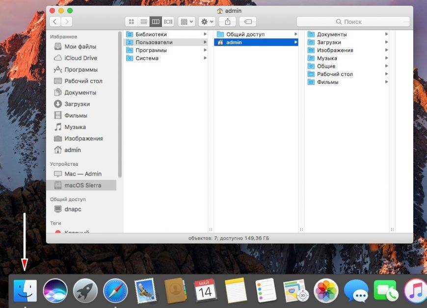 Иконка Finder находится слева в области Dock (меню). По сути, это файловый проводник на Маке и быстрый доступ к избранным папкам.