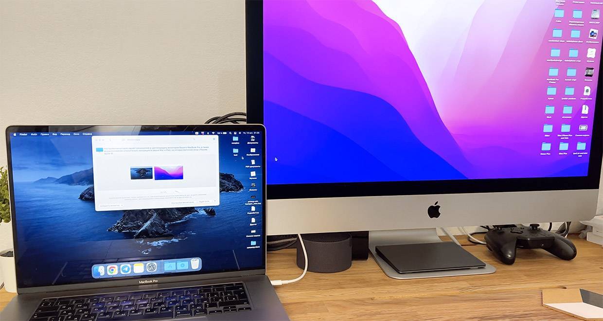 Благодаря Универсальному управлению, многие смогут отказаться от использования внешних мониторов вообще. Ведь теперь достаточно просто двух Mac, которыми вы будете управлять с периферии одного из них. Не стоит забывать и о раздельной мощности, то есть независимости нагрузки на каждый из таких «мониторов» – ведь фактически это по-прежнему два отдельных компьютера, просто вы управляете ими через один.