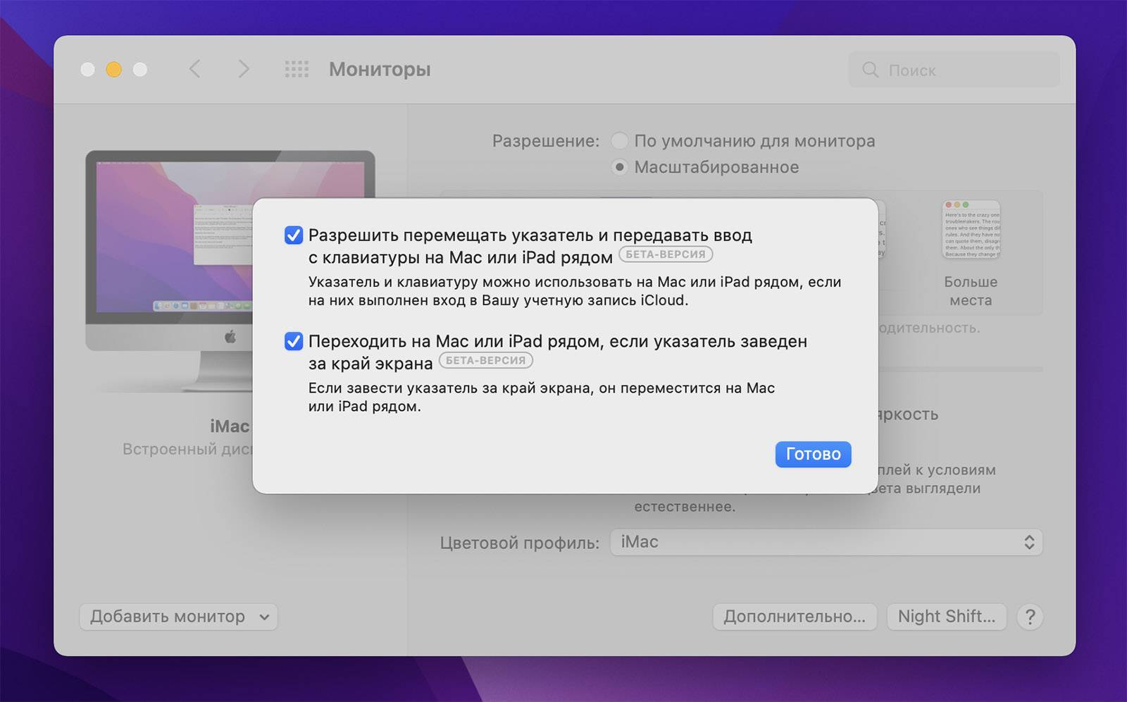 Всё, вы настроили Универсальное управление на этом Mac. Повторите то же самое на другом компьютере.