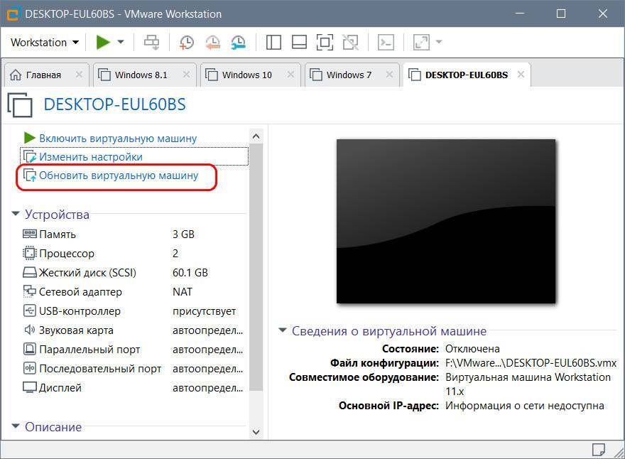 Если вы используете VMware Workstation версии выше 12, желательно обновить машину для лучшей совместимости с используемой версией гипервизора.