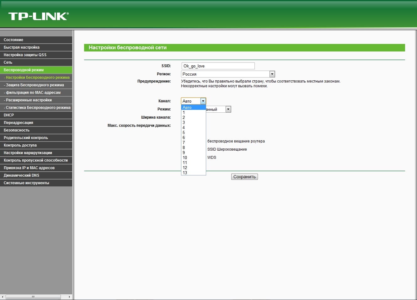 В случае со старым интерфейсом моделей TP-Link для смены канала достаточно попасть из главного меню в раздел «Основные настройки» и, выбрав нужный, сохранить нажатием соответствующей кнопки на странице.