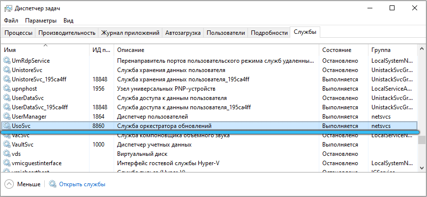 Процессы, соответствующие этим файлом, отображаются в диспетчере задач. Они входят в состав системных компонентов операционной системы Windows. Имеют непосредственное отношение к Update Session Orchestrator. Так именуется системная служба. Её задача заключается в работе с обновлениями. Служба берёт на себя функции поиска, загрузки, а также установки.