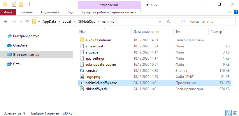 Если же открыть её расположение, тогда Вы попадаете в раздел: C:\ Пользователи\ Имя_пользователя\ AppData\ Local\ NhNotifSys\ nahimic. Это уже не классическое месторасположение приложения. Что уже не внушает доверия и хочется его побыстрее удалить.