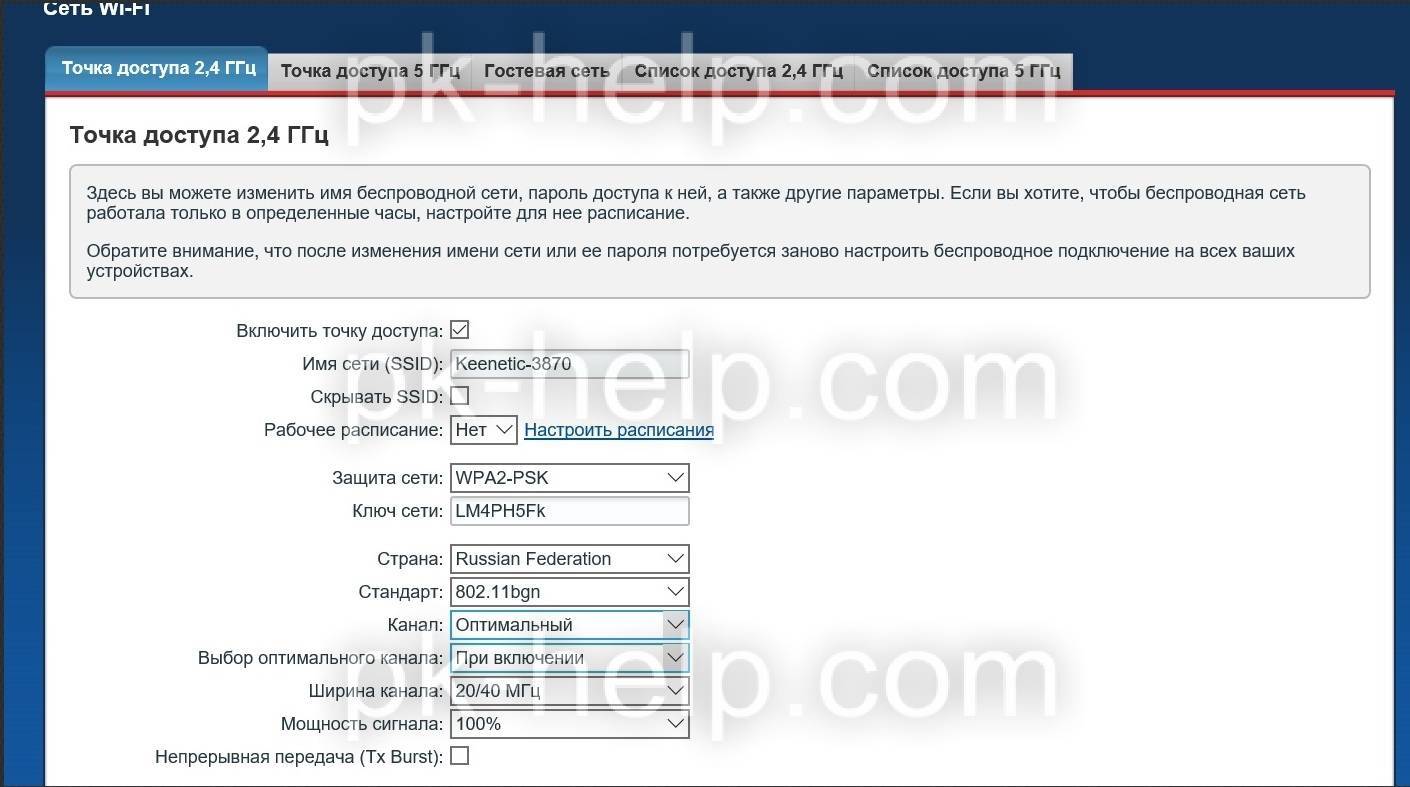 Но если вы все же решили изменить настройки, то зайдите в меню “Сеть Wi-Fi”. И во вкладках “Точка доступа 2.4 ГГц” и “Точка доступа 5ГГц” измените настройки сети.