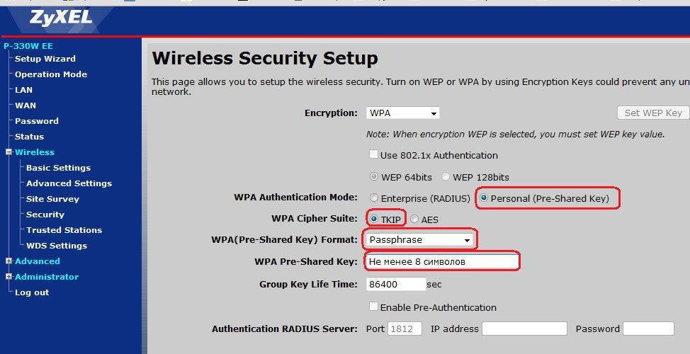 - пароль (WPA Format) — впишите любое ключевое слово;