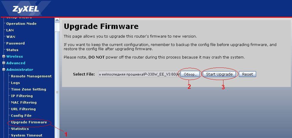 Перейдите в пункт Upgrade Firmware, который находится в разделе Administrator.